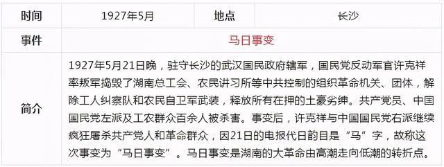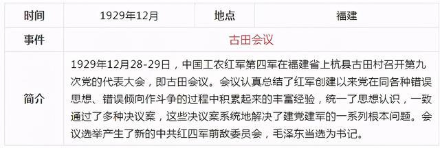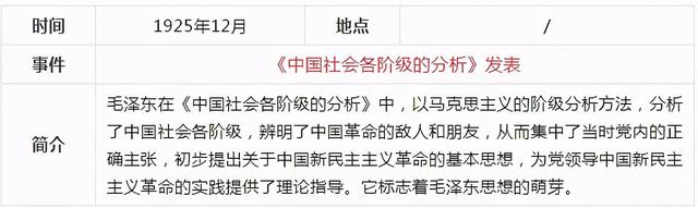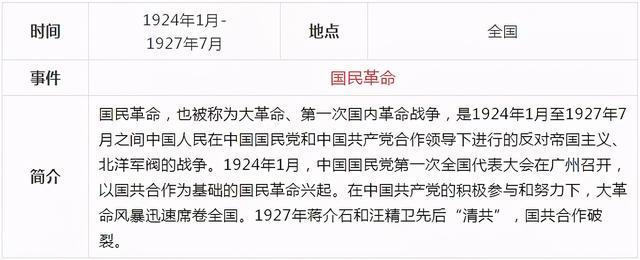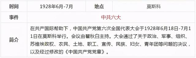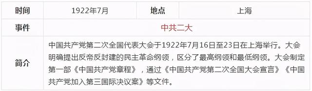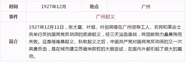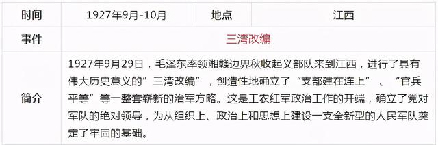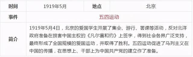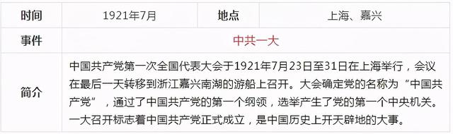 當前,黨史學習教育活動正在進行,《關于在全黨開展黨史學習教育的通知》要求,對黨史學習教育作出了部署安排。要做到學史明理、學史增信、學史崇德、學史力行,為全面建設社會主義現代化國家、實現中華民族偉大復興的中國夢而不懈奮斗。確保黨史學習教育取得扎實成效。中共一百年歷史內容非常豐富,浩如煙海,通過表格的形式,更容易理清歷史的脈絡,把握重大事件,我們先從新民主主義革命時期開始學習,下面這張表格通過時間、地點、事件、簡介四個部分作歸納,一目了然。